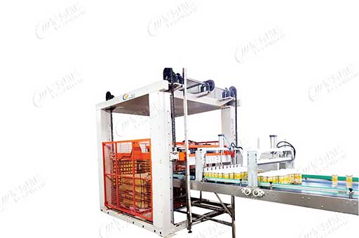 1.實罐碼垛機:適用于實罐或空罐馬口鐵罐、玻璃瓶。設(shè)備主要由實罐輸送系統(tǒng)、 實罐碼垛系統(tǒng)組成。工作方式采用磁力吸取移載型,不傷罐、不擦罐、不掉罐。這類設(shè)備簡單、可靠、靈活性高且體積小。生產(chǎn)速度大概為400罐/分,運行穩(wěn)定可靠。