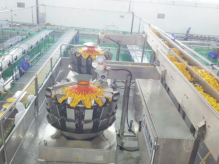 (2)按主機(jī)能力配置不同規(guī)模的連續(xù)化生產(chǎn)線。故蘿生產(chǎn)線視四道機(jī)(去皮、切端、通芯、括肉)的能力80個(gè)/min機(jī)分級(jí)規(guī)格進(jìn)行配置。桃子生產(chǎn)線視桃瓣挖核機(jī)的能力70~80個(gè)/min及分級(jí)規(guī)格進(jìn)行配置。火腿生產(chǎn)線能力750kg、1000kg、1500kg、2000kg進(jìn)行配置。